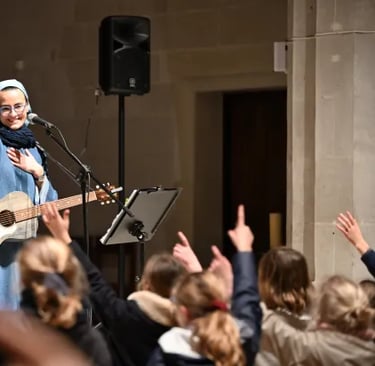 Depuis, sœur Agathe sillonne la France, d’école en école et pour des concerts familiaux. Dans les écoles elle anime des catéchèses musicales et lors des concerts familiaux elle aime asseoir les familles ensemble, pour qu’elles puissent vivre un vrai moment de complicité. Elle aime aussi glisser des chants pour les adultes lors de ses concerts. En trouvant les mots justes, elle n’a pas peur d’aborder des thématiques plus douloureuses comme la mort, ou des mots qui sembleraient trop savants tels que "la grâce". Ce dont elle a particulièrement à cœur c’est de "transmettre l’intériorité aux enfants, le fait qu’ils soient capables de connaître Dieu, de descendre dans leur cœur", confie-t-elle à Aleteia.