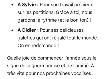 L'année 2025 commence sous le signe de la fête de l'Épiphanie, une occasion parfaite pour déguster la délicieuse galette des rois. Choristes et musiciens ce moment festif annonce une année riche en événements et en célébrations, l'année du Jubilaire où la louange et la prière seront à l'honneur. Que cette année nous porte dans l'allégresse et la joie pour tous. Alléluia !