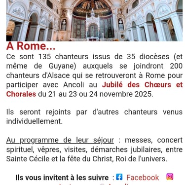 Rome : le jubilé des Choeurs et Choristes 21 au 23 novembre- Merci pour ces partages à Joëlle, Marie-Françoise et Alain
