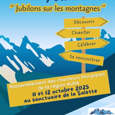La Salette : la chorale Grâce dignement représentée par Andrée, Joëlle, Afrah, Guy le temps d'un week-end sous l'égide de l'association Ancoli rassemblement des choristes au service du chant liturgique région Rhônes -Alpes.